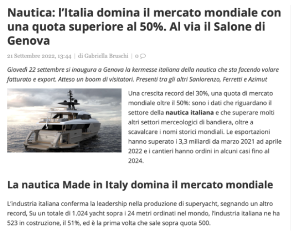 protagonista con oltre il 50% del mercato internazionale di Yacht e