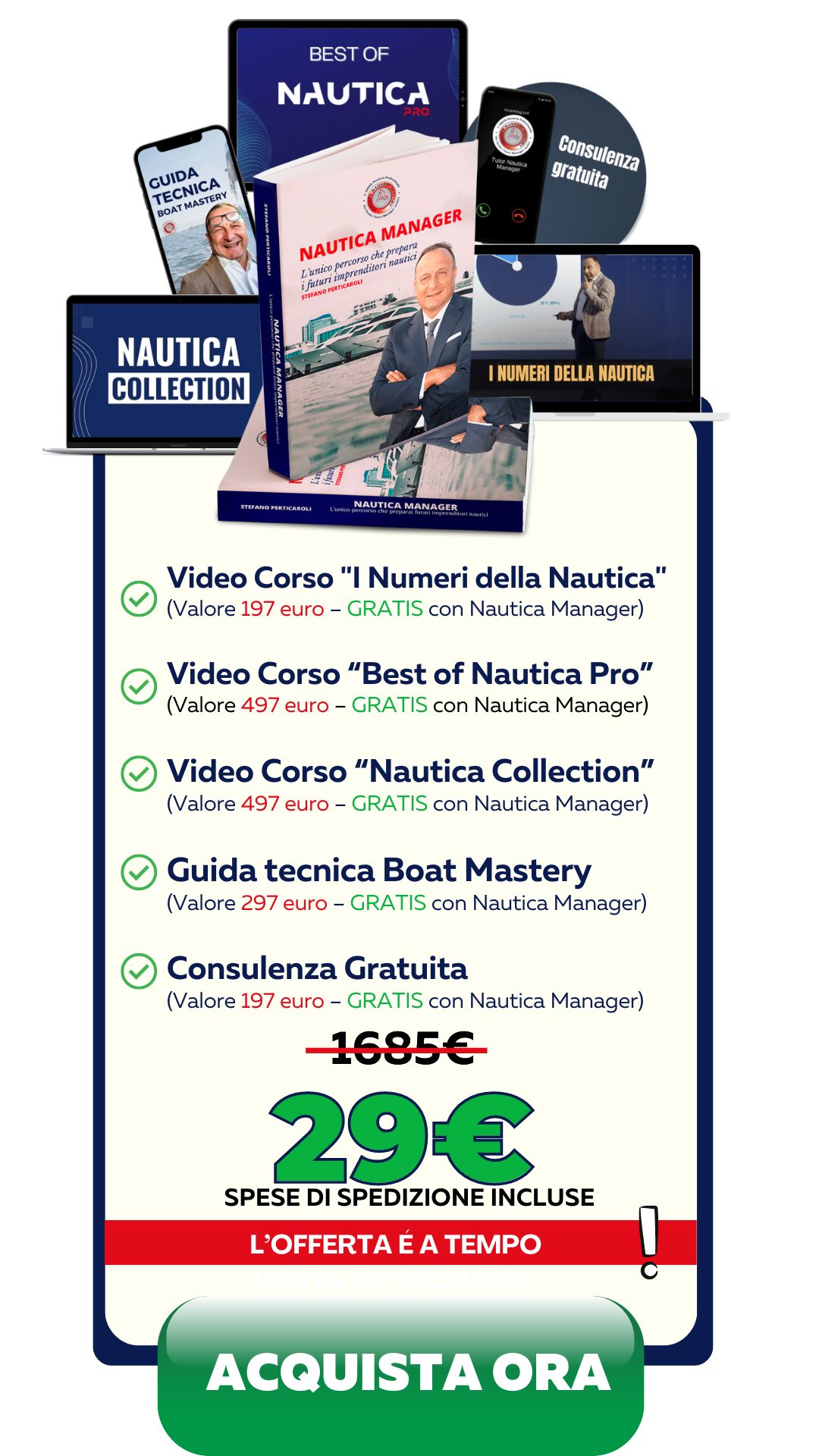 Se investirai oggi €29 in Nautica Manager, oltre alla spedizione inclusa, riceverai oltre €1685 di Bonus GRATIS: